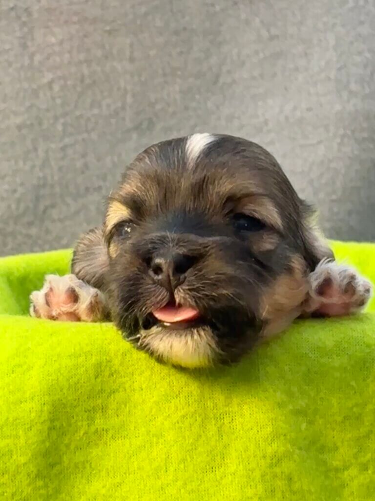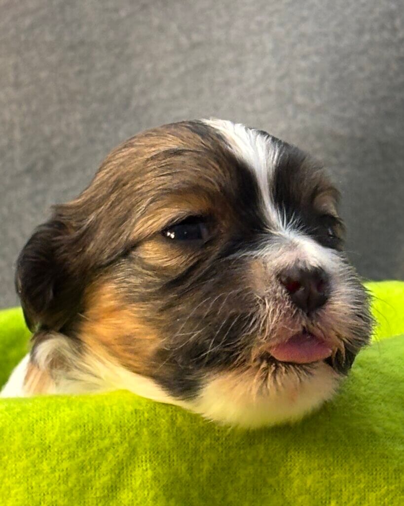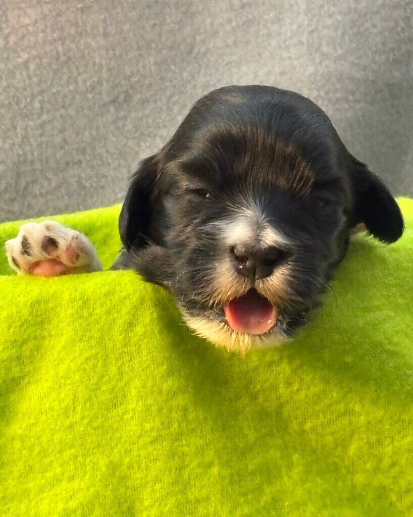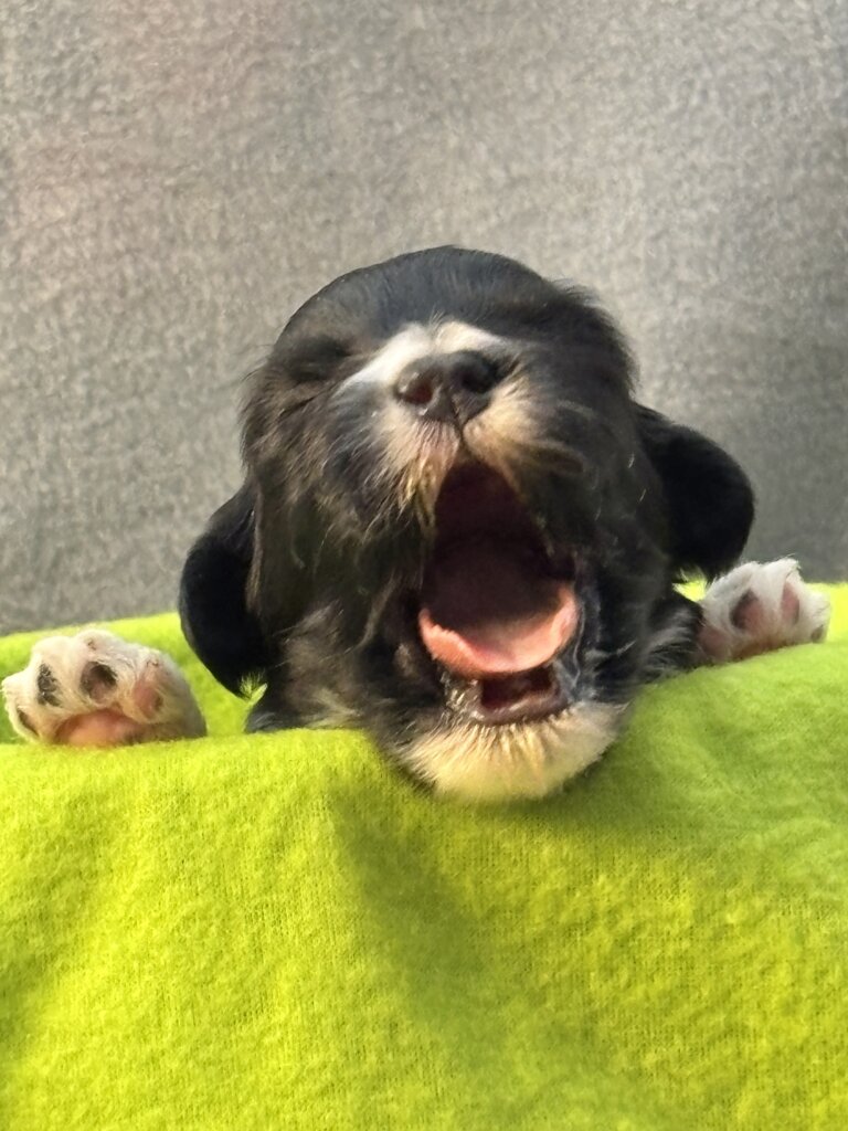 Puppies eyes are starting to open and some ears are opening. They will soon experience kibble to supplement Glory’s milk. Look for increased activity and exploration from the puppies.